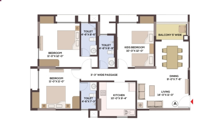 3 BHK Flats & Apartments For Sale In Kamalgazi, Kolkata (1162 Sq.ft.)