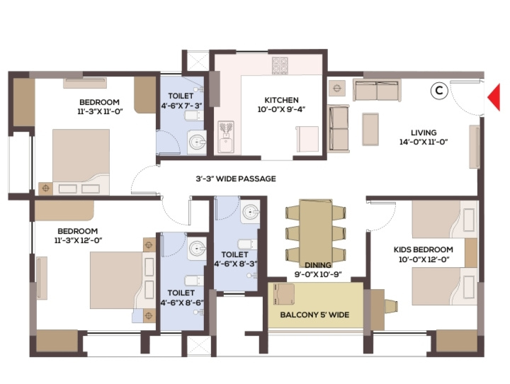 4 BHK Flats & Apartments For Sale In Tollygunge, Kolkata (1431 Sq.ft.)